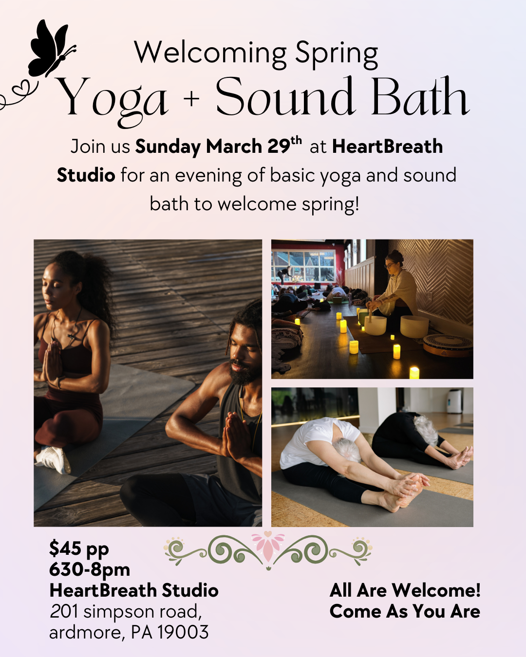 Sunday, March 29, 2026 Welcoming Spring Yoga & Sound Bath 6:30-8pm